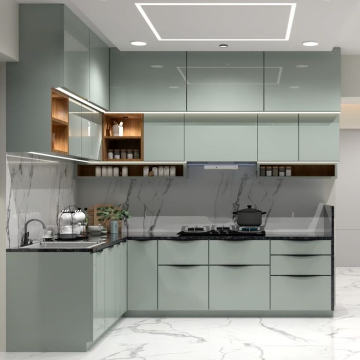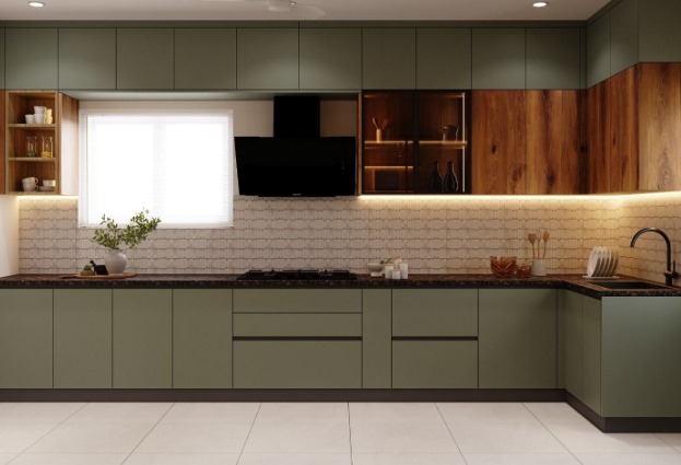 Functional modular kitchen with smart storage.