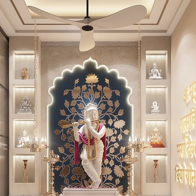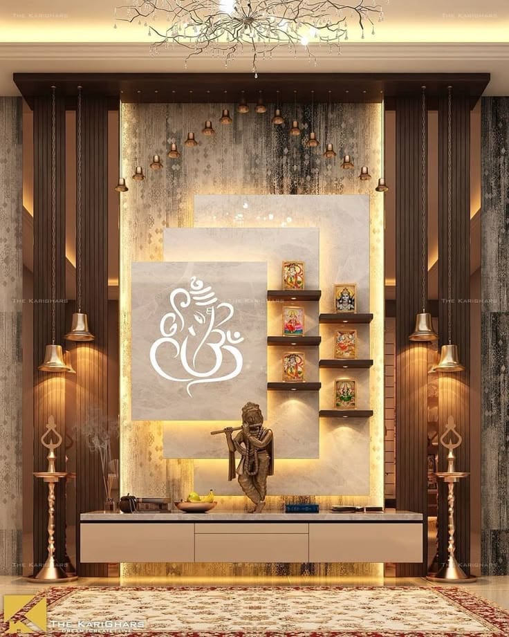 Traditional and modern pooja room interiors.